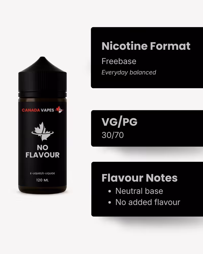 Discover the versatility and purity of our No Flavour E-Liquid, proudly crafted in Canada. Designed specifically for the discerning DIY vaper and those who prefer a minimalist flavour profile, this e-liquid serves as the perfect foundation for creating personalized blends. Free from any specific flavours, it provides a neutral base that invites experimentation, allowing you to craft a vaping experience that is uniquely yours.