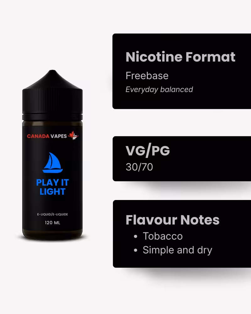 Proudly made in Canada, Canada Vapes introduces Play It Light E-Liquid โ a vaping experience that promises a smooth inhale and a warm, satisfying exhale. This exceptional e-liquid offers the perfect balance, delivering just the right amount of honey wheat taste that will undoubtedly become your go-to choice.