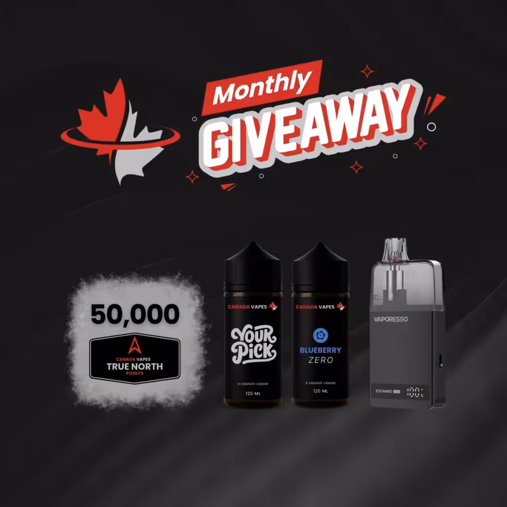This month’s prize includes two bottles of our lab-made e-liquid, one Vaporesso Eco Nano Plus Pod Kit Pod System, and $50 worth of True North Points!